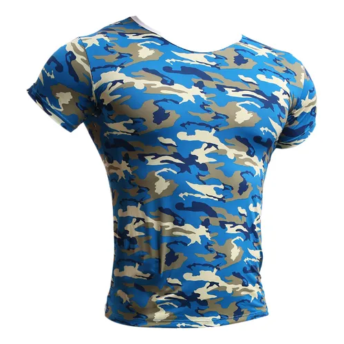 Camiseta de poliéster transpirable manga corta, cuello redondo y diseño de camuflaje de bosque impreso. Los materiales de su composición le dan una suavidad a la tela que además te permite mantenerte seco, y cómodo de llevar. Adecuado para deportes.
