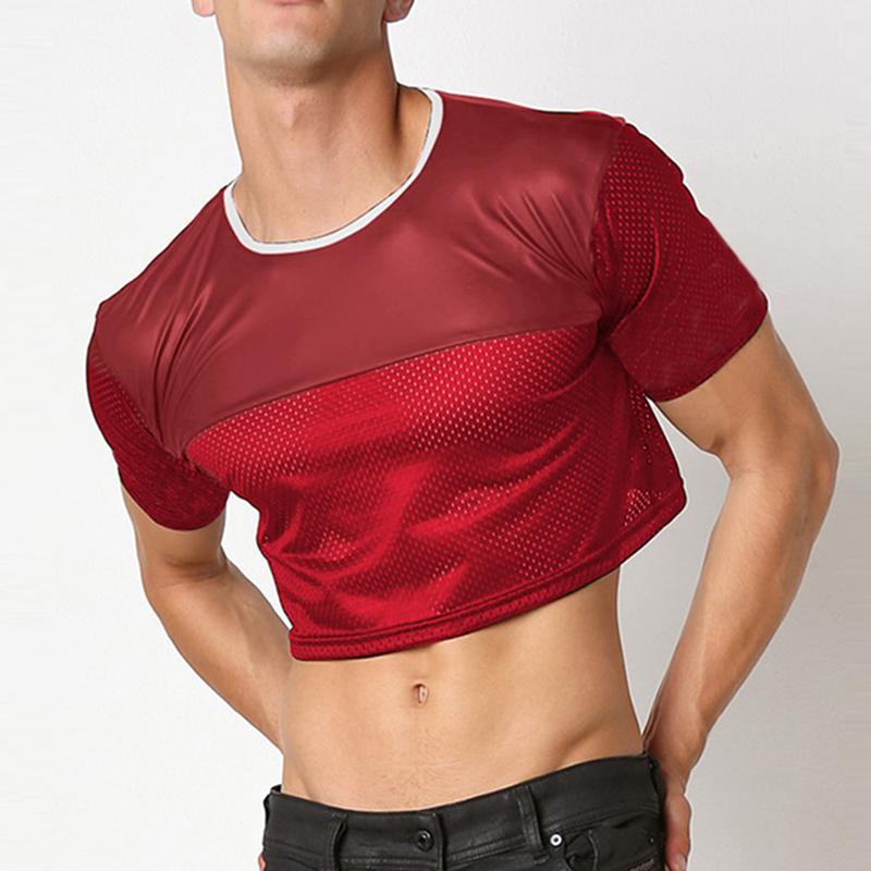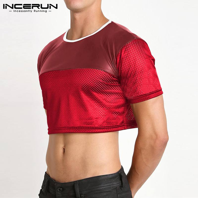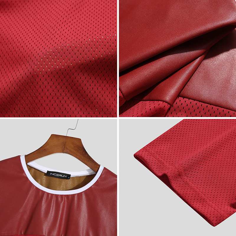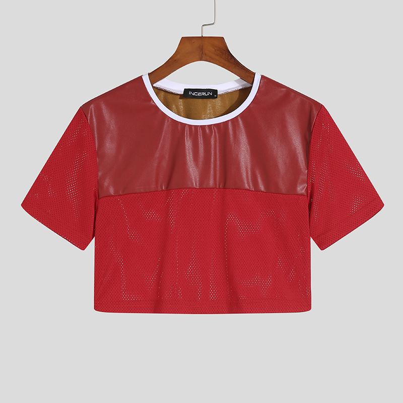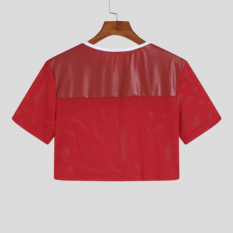 Siente la energía y la rebeldía con el Crop Top INCERUN Fevercity, una prenda única que combina la audacia del cuero sintético en la parte superior con la frescura del poliéster microperforado en las mangas y el torso.