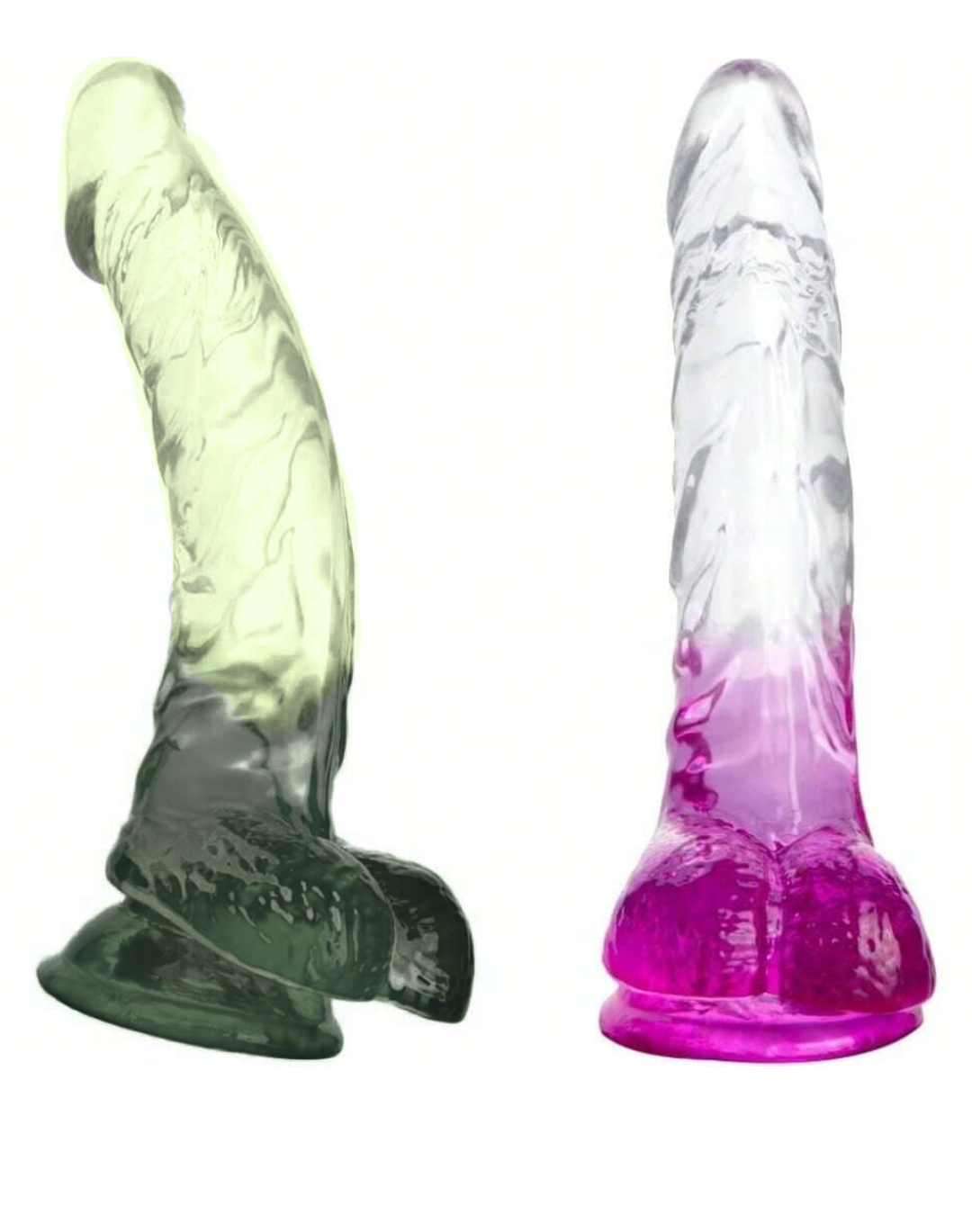 Dildo Realista Translúcido Morado y Verde Oliva