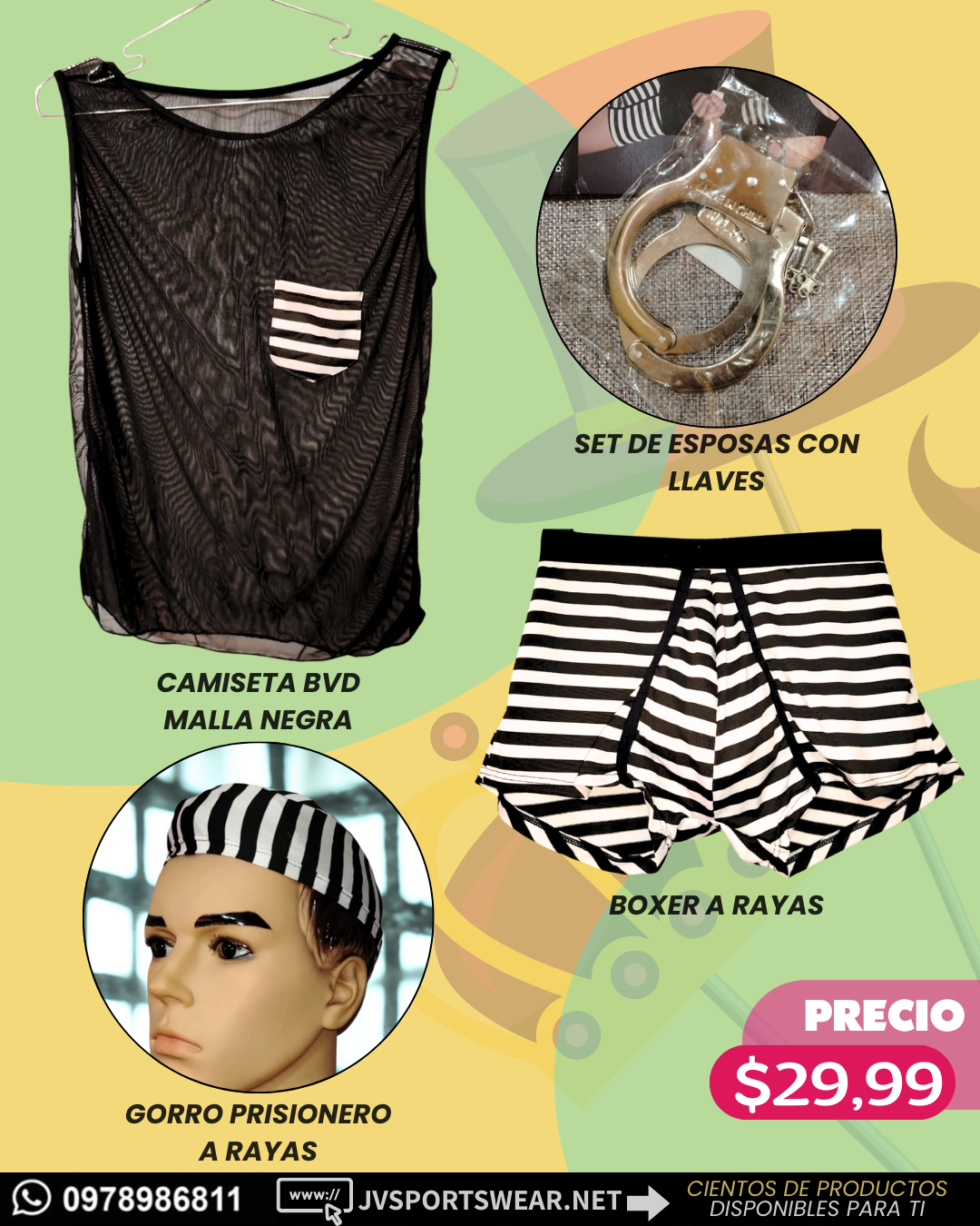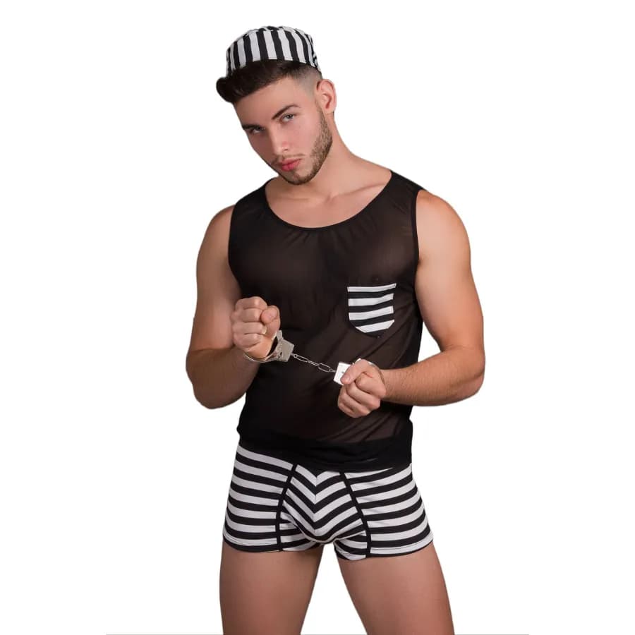 Mucho tiempo conteniendo tus deseos… es momento de liberarlos. Este disfraz de preso está diseñado para despertar la imaginación y encender la picardía. Con su clásico patrón de rayas blanco y negro y accesorios incluidos, entrarás en personaje de pies a cabeza para vivir experiencias únicas, ya sea en juegos de rol, fiestas temáticas o momentos privados cargados de diversión.