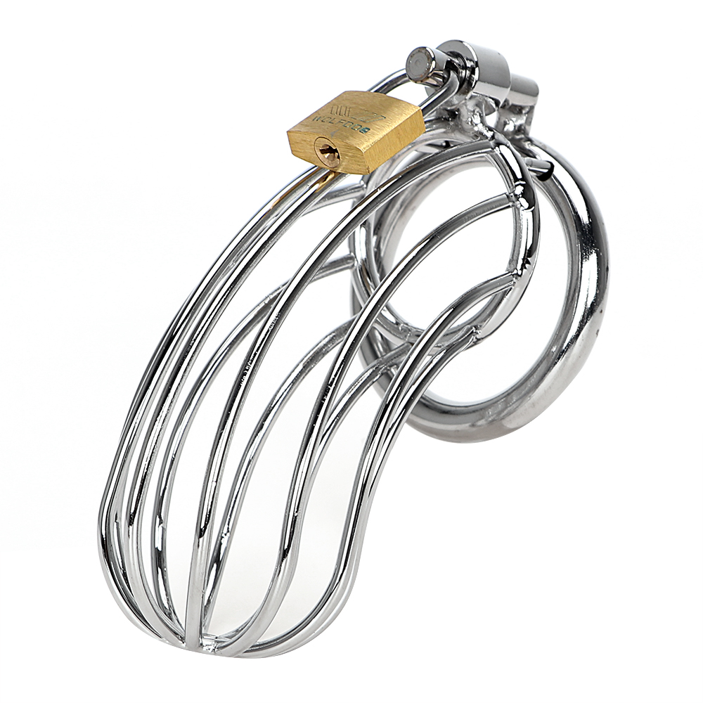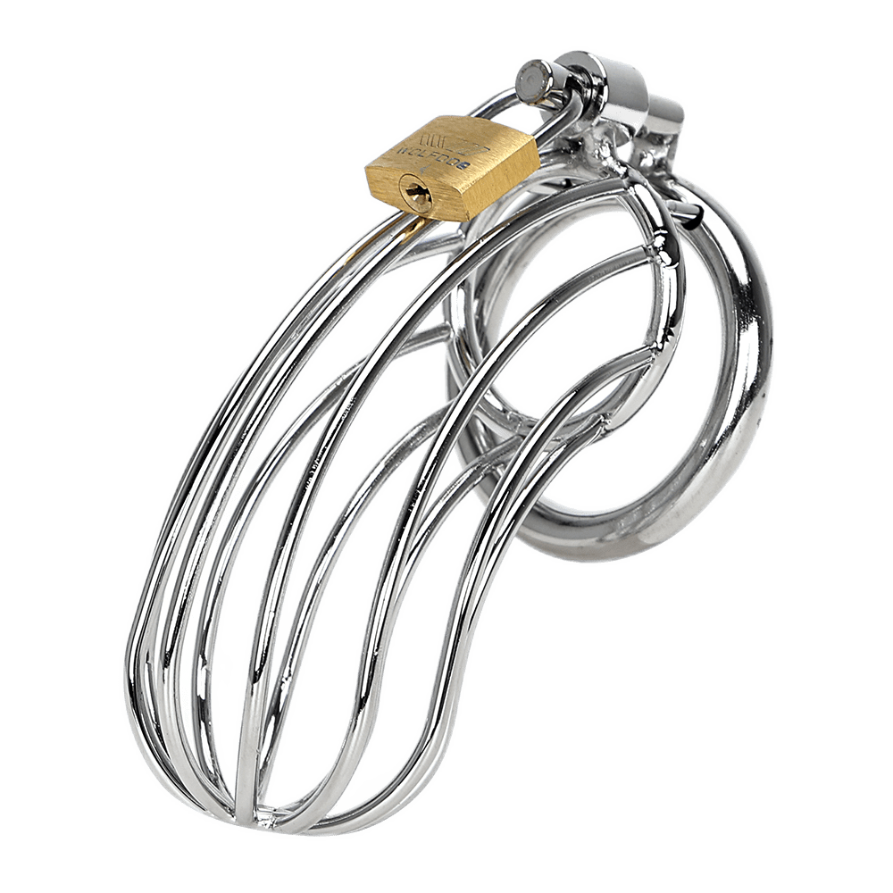 • Jaula de castidad masculina de acero inoxidable cromado.