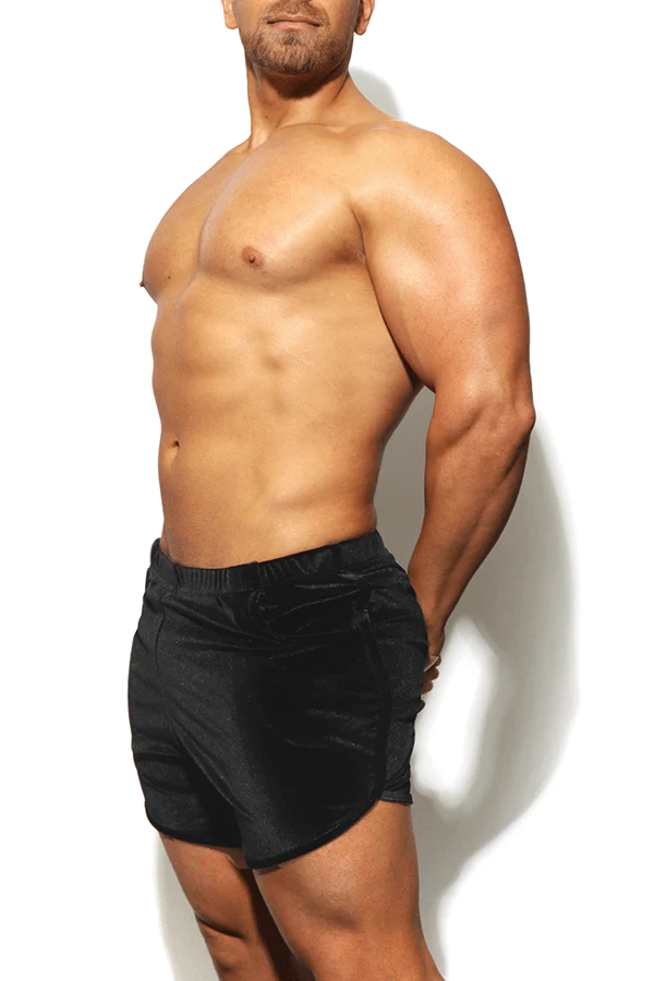 Este short, confeccionado con una exquisita tela de terciopelo brillante de poliéster, es la definición de lujo y sensualidad. Similar al estilo del Velvet brief con su suavidad y atractivo, permitiéndote vivir tus fantasías más sexys con confianza.